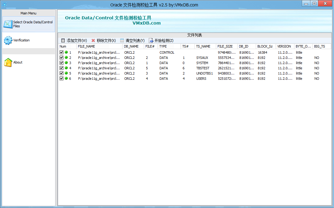 *支持 Oracle 9i/10g/11g/12c 的数据文件和控制文件的检测